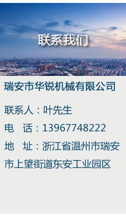 瑞安市華銳機械有限公司的誠信、實力和產品質量獲得業(yè)界的認可。歡迎各界朋友蒞臨參觀、指導和業(yè)務洽談......【查看詳情】